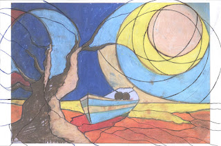 The customer wanted to recreate in glass a magical moment in time - a beautiful night spent in a rowing boat under a full moon in The Gambia and started to sketch...